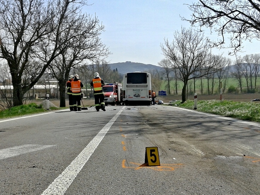 Hlavní tah z Brna na Svitavy zablokovala srážka autobusu s autem