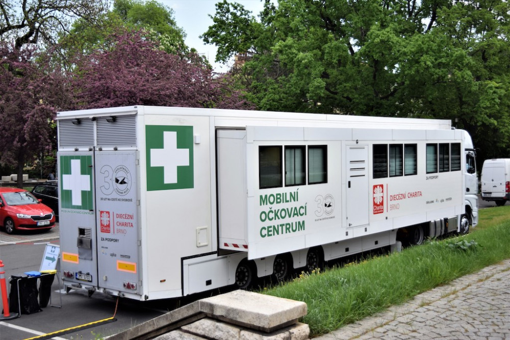 Brněnský kamion pomáhá s očkováním v Pardubicích