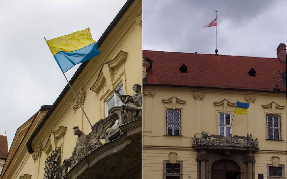 Brno vzdává hold Ukrajině. Státní vlajku ale vyvěsilo obráceně
