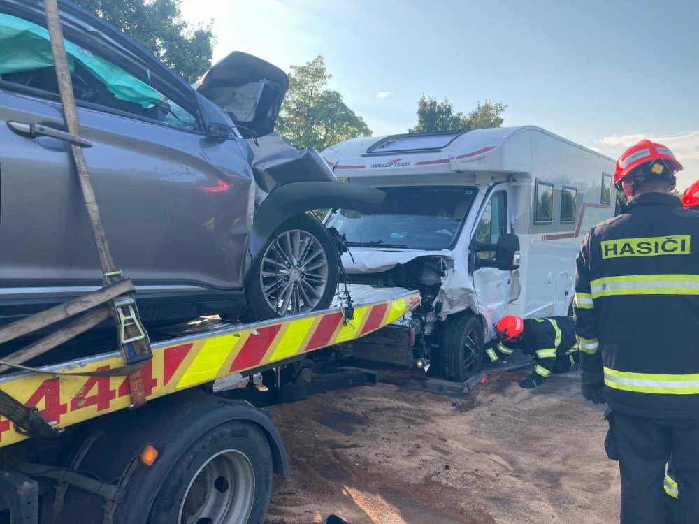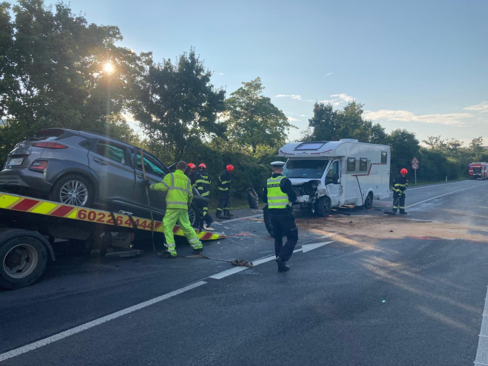 Tragická dopravní nehoda u Mikulova. Řidič auta zemřel po střetu s obytným vozem