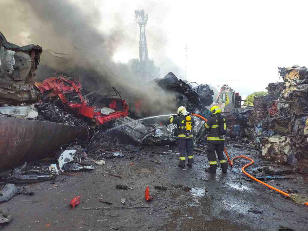 Jihomoravští hasiči likvidovali požár desítek aut na vrakovišti