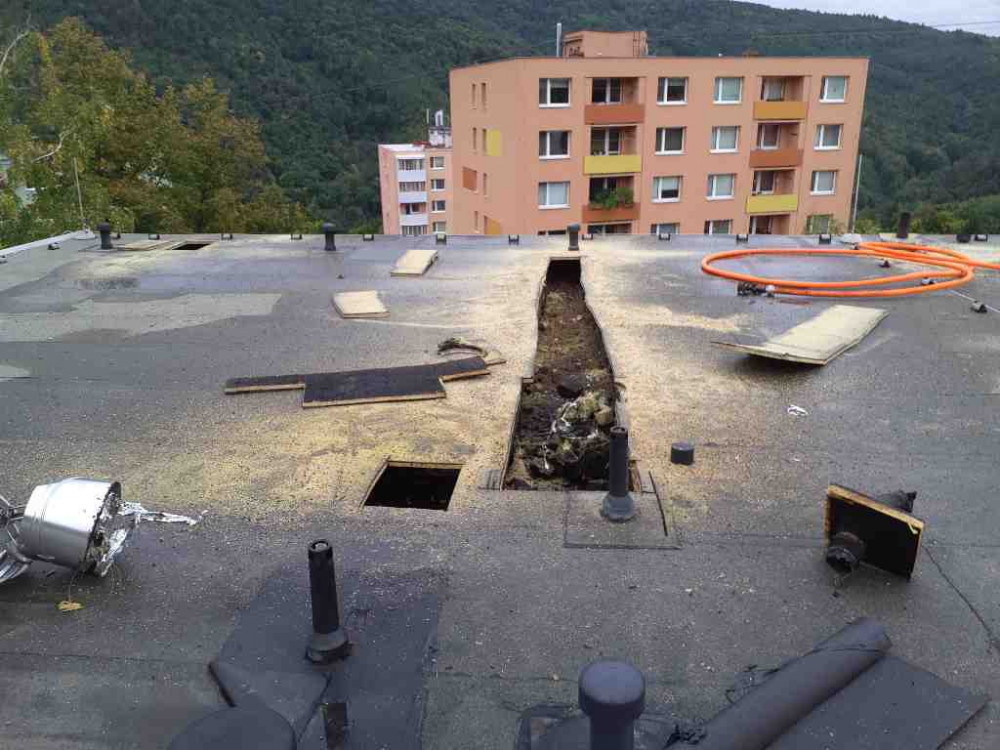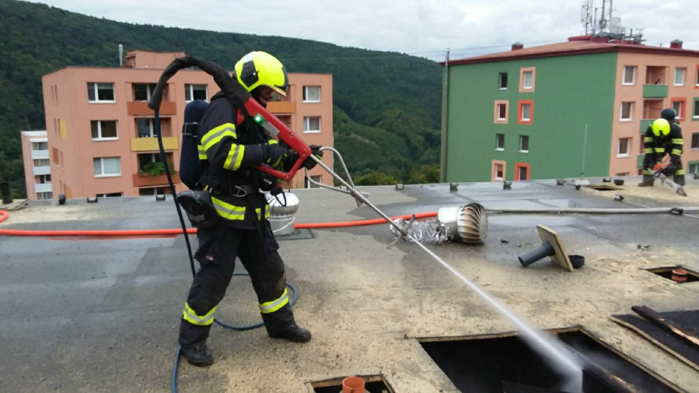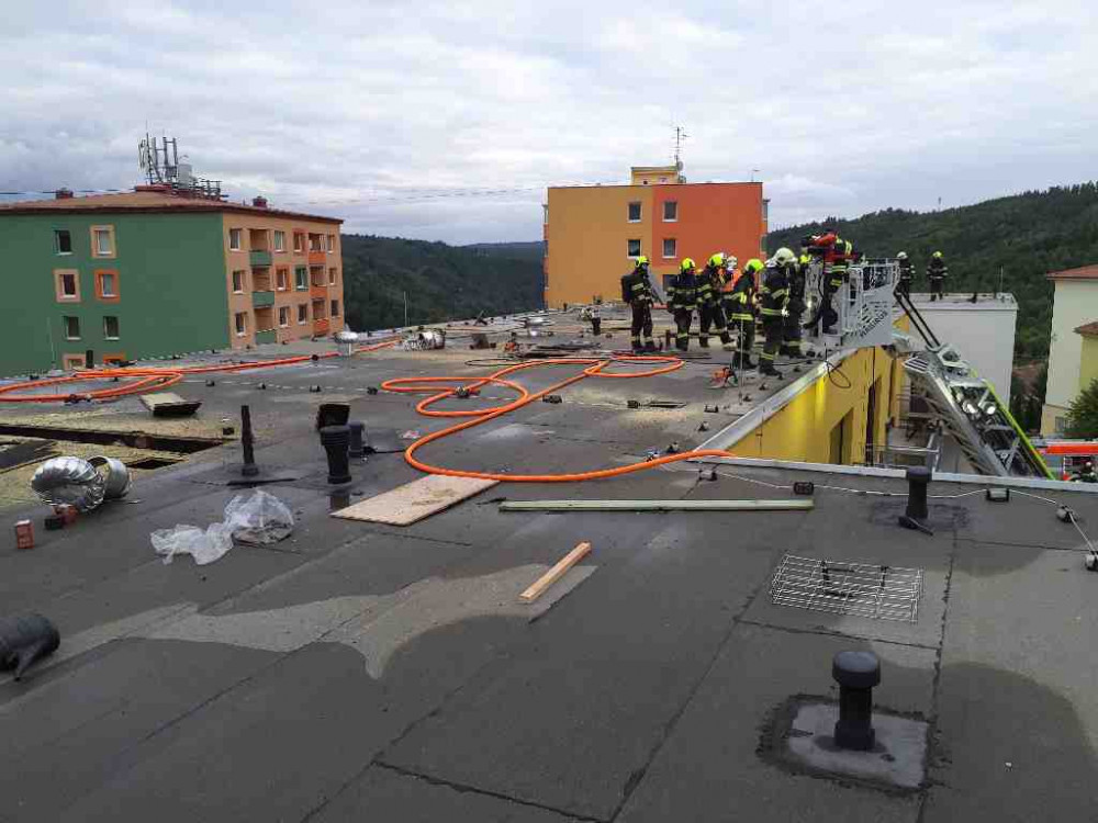 V Adamově hořela střecha paneláku, lidé hledají náhradní nocleh