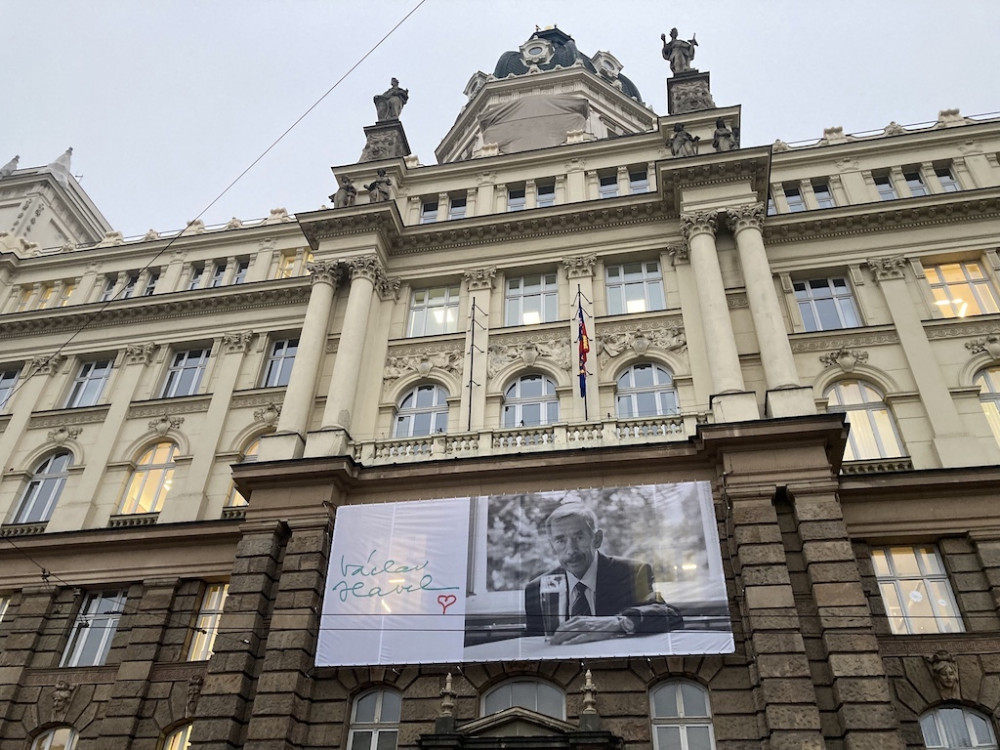 Na Brno shlíží Havel. Obří fotografie má připomínat prezidentův odkaz