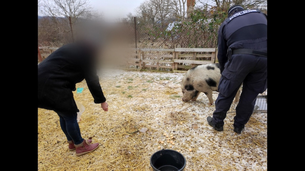 Lidé v Brně zavolali na pasoucí se miniprase policisty. Ti vytáhli na vepře piškoty