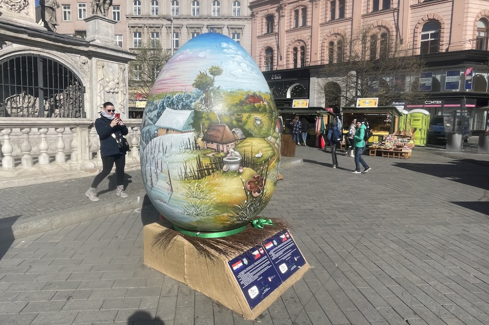 Na brněnském náměstí Svobody je obří malovaná kraslice z Chorvatska