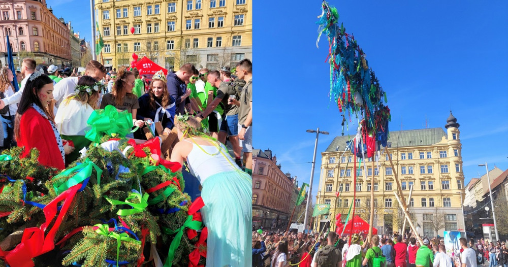 Stavěním májky na náměstí Svobody začal po dvou letech brněnský majáles