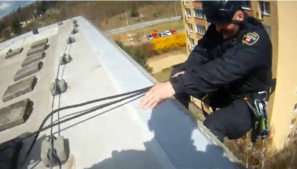 Záchrana důchodkyně. Strážníci v Brně k ženě slanili ze střechy paneláku