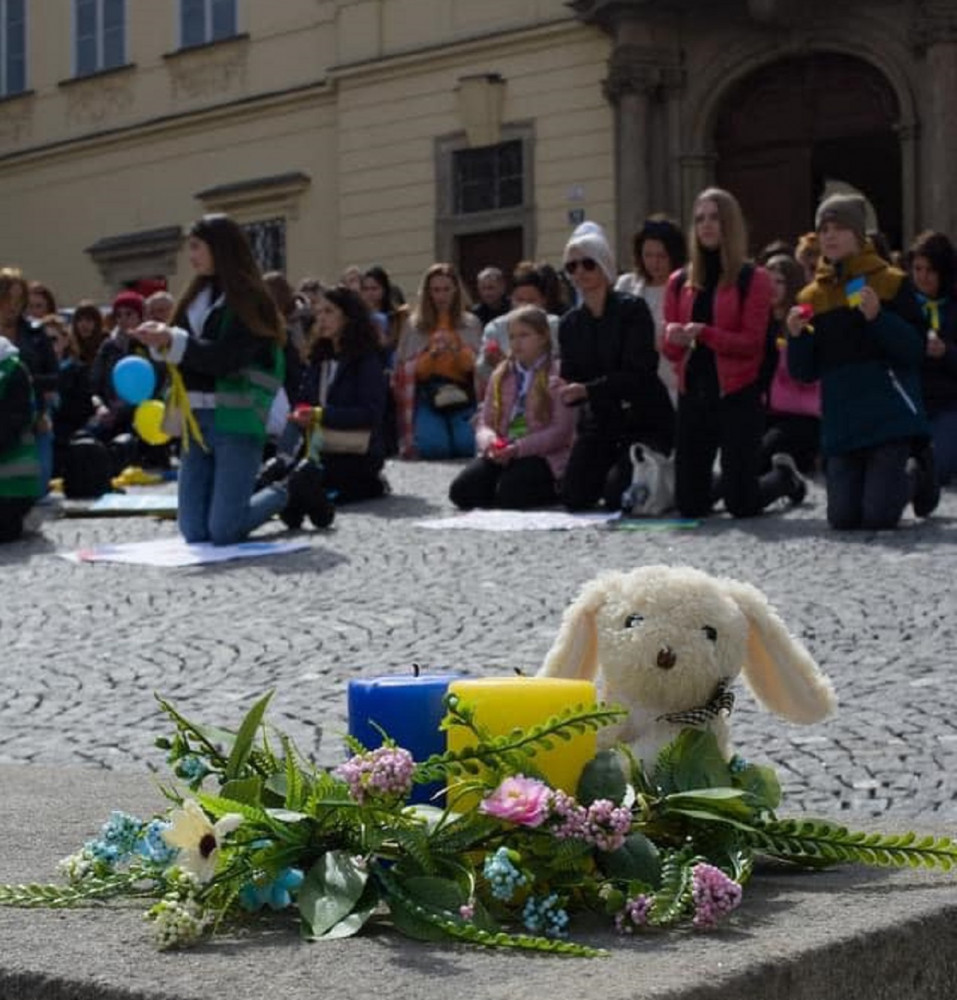 Na náměstí v Brně zpívali lidé písně opěvující hrdinství ukrajinského národa