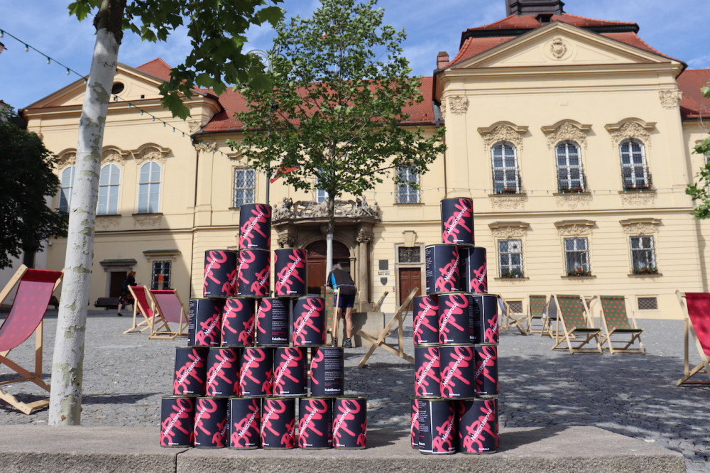 Konzervami po městě upozorňují na skutečnost, že je radnice dlouhá léta zakonzervovaná.
