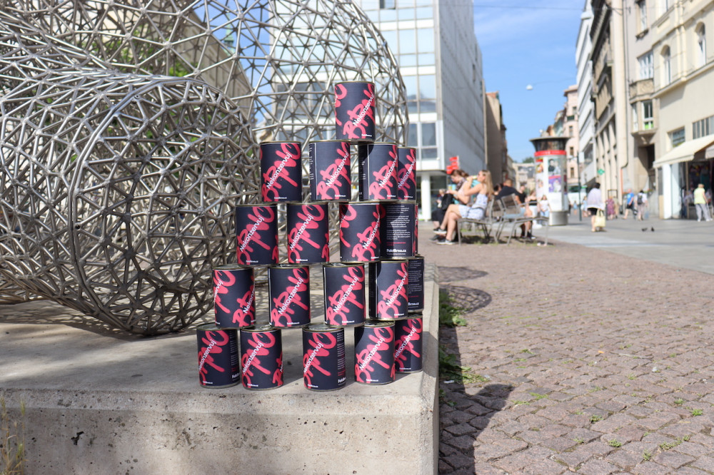 Stovky konzerv se objevily na náměstí Svobody, Moravském náměstí, ulici České a dalších místech.