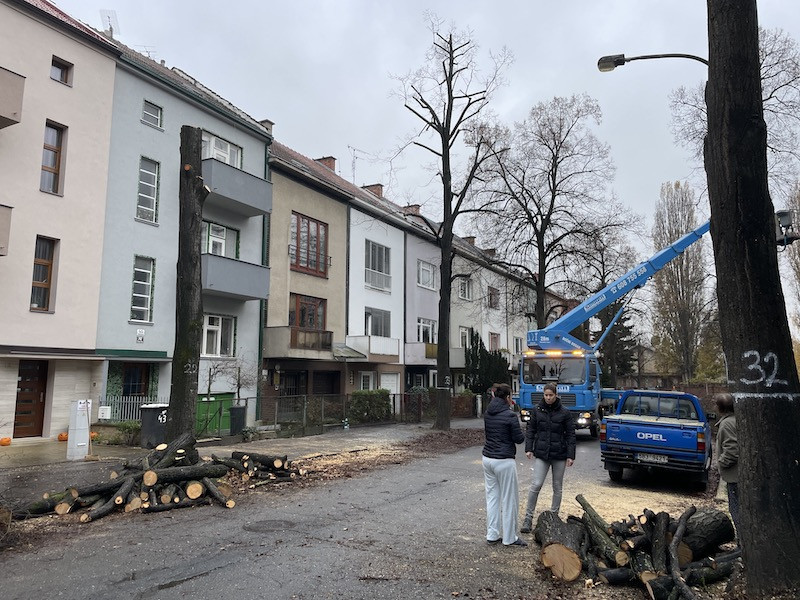 Kácení aleje v brněnské Krkoškově ulici