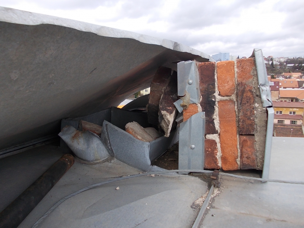 Hasiči zajišťují větrem utrženou střechu, foto- HZS JMK
