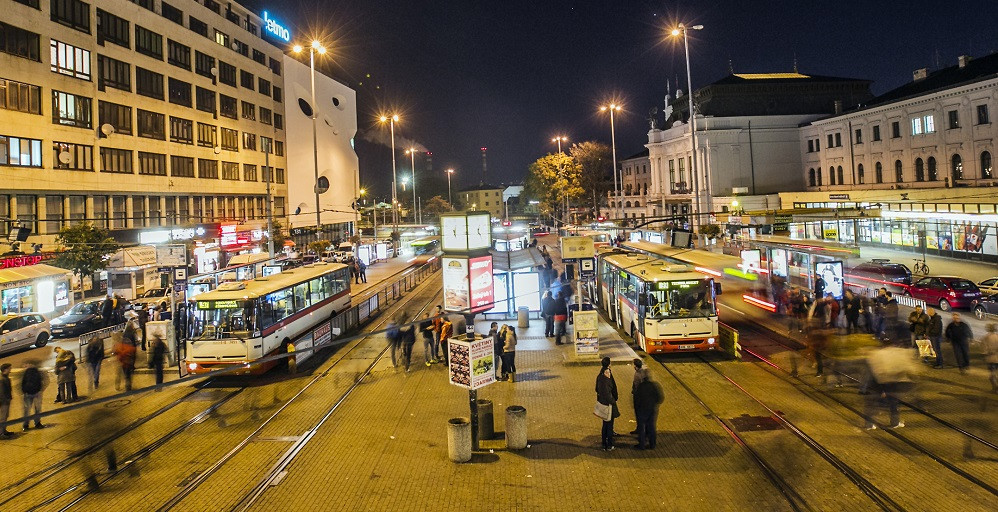 Mladík hrozil cestujícím v Brně noži. Po vystoupení rozkopal dveře autobusu