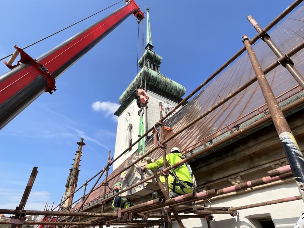 Jeřáb vrací kostelu v centru Brna kamenné ozdoby. Farnost shání více peněz