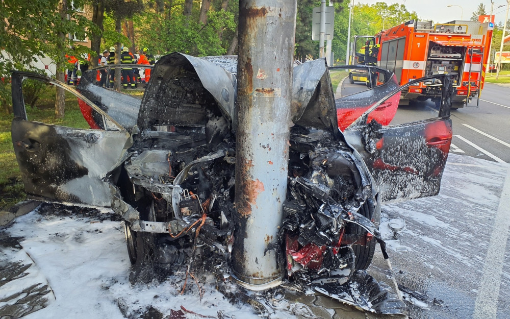 Na křižovatce v Brně vzplanulo auto. Zraněné vytahovali z vozu kolemjdoucí