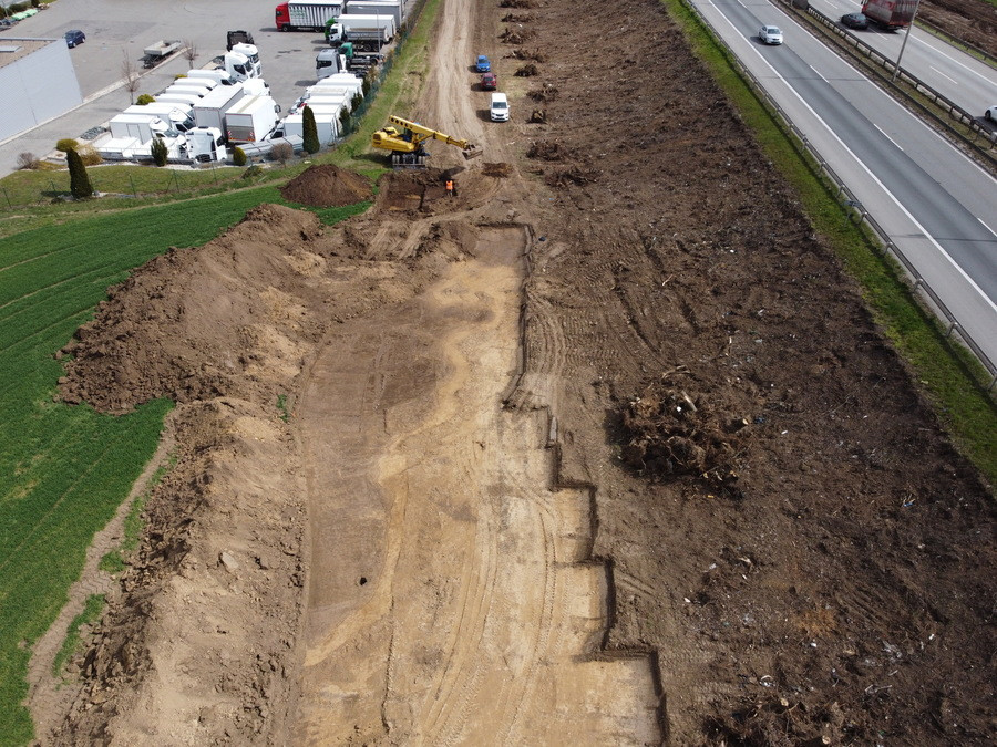 Severní strana dálnice při odkryvu.