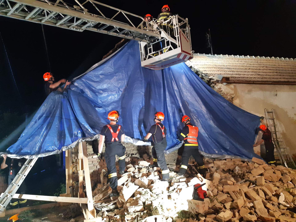 Muže u Vyškova zasypala zeď rodinného domu. Těžce zraněného ho ze sutin vytáhli hasiči