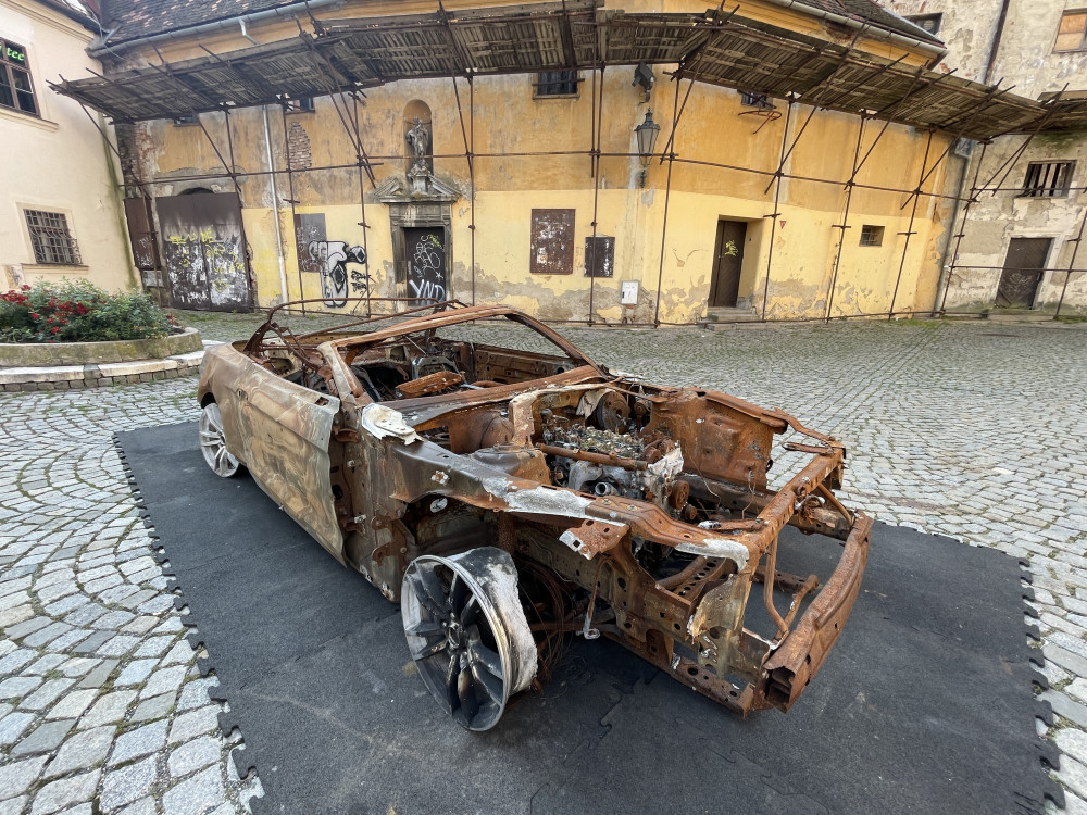 Ukrajinské vraky v Brně budí emoce. O válce se musí mluvit, hájí výstavu organizátoři
