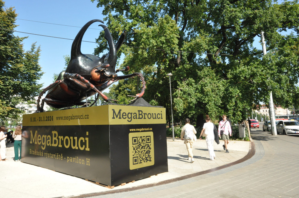 Na Moravské náměstí v Brně přistál obří brouk. Láká na výstavu hmyzích soch