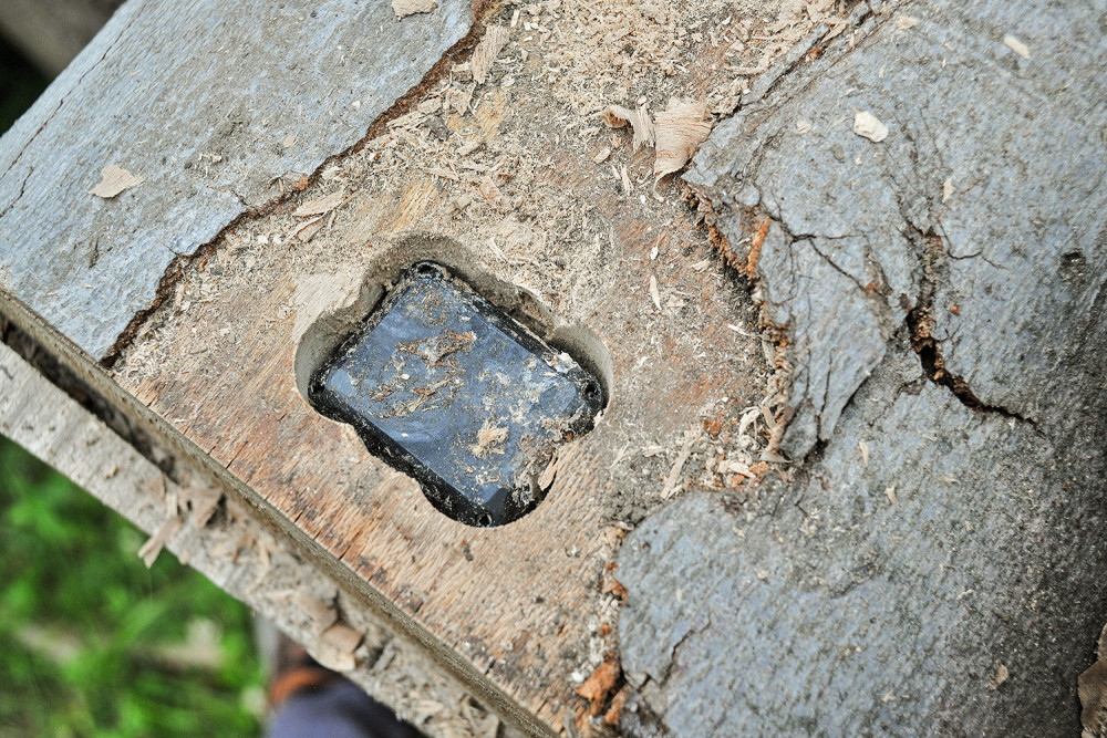 Instalace GPS trackerů do dřeva v Krušných horách.
