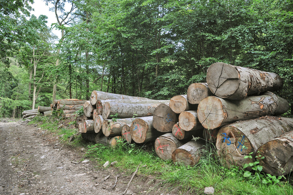 Pokácené stromy v Mariánském Údolí v Krušných horách.