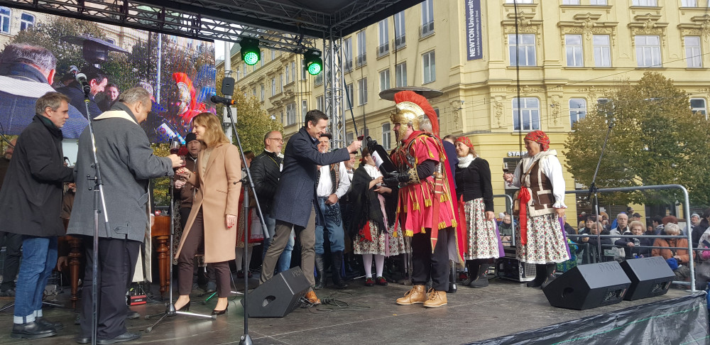 Na zdraví, volali lidé v Brně. Ťukali si svatomartinským vínem, které jim dovezl známý herec