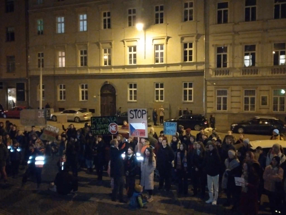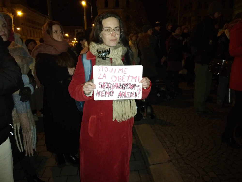 VIDEO: Lidé před brněnským soudem demonstrují za znásilněnou Aničku. Požadují spravedlivější trestání sexuálních zločinů