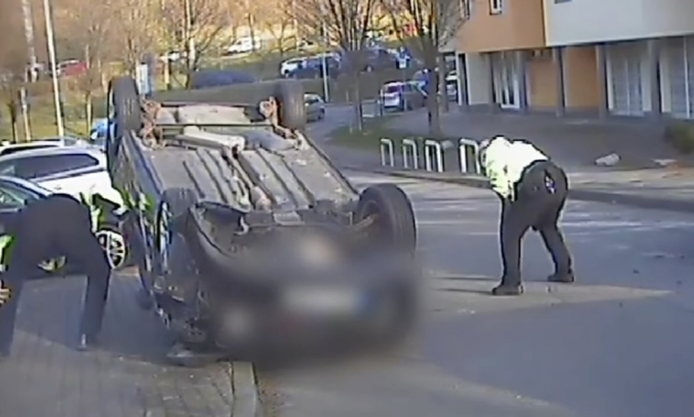 VIDEO: Namol opilý muž bez řidičáku otočil auto na střechu. Pak drmolil, že vypil jen půl lahve rumu