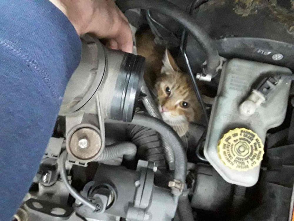 Ženě utekla kočka a schovala se pod kapotu auta. Vysvobodila ji až majitelka vozu