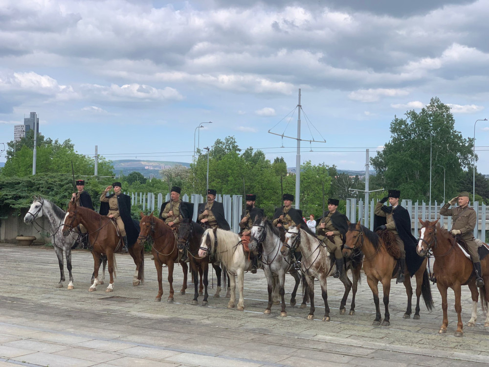 VIDEO: Lidé si na brněnském hřbitově připomněli konec druhé světové války. Milovníci historie přijeli na koních