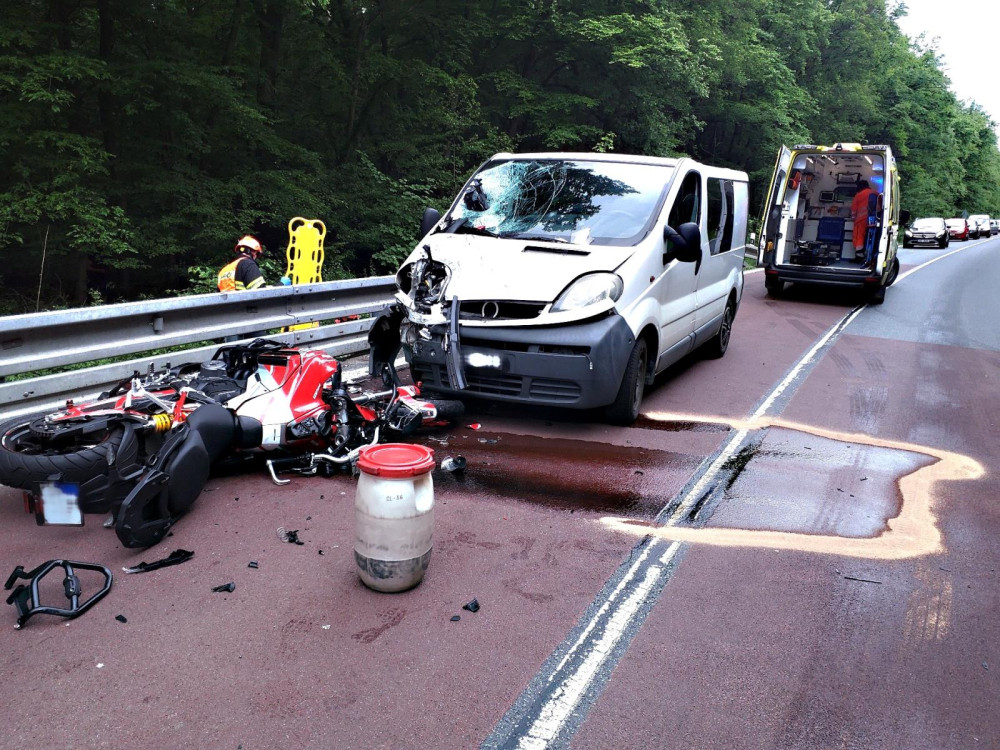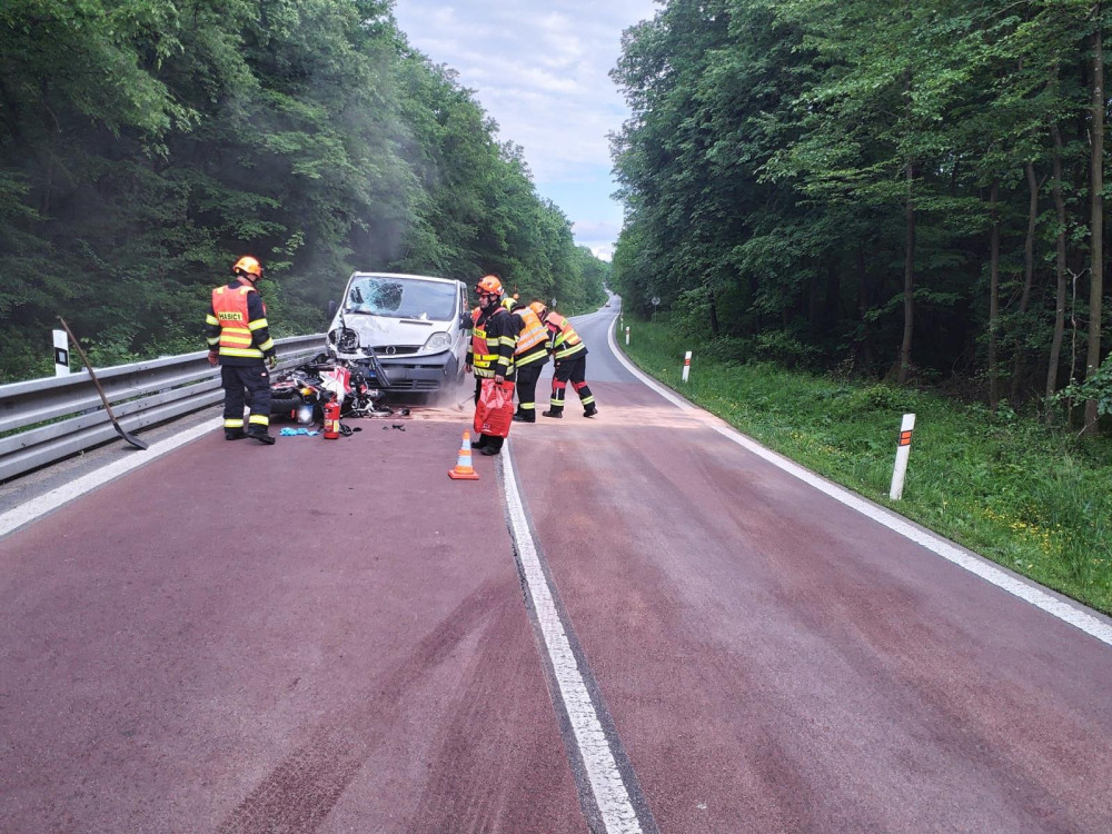 Jihomoravští hasiči v sobotu zasahovali u deseti nehod. Z příkopu vyprošťovali motorkáře po střetu s dodávkou