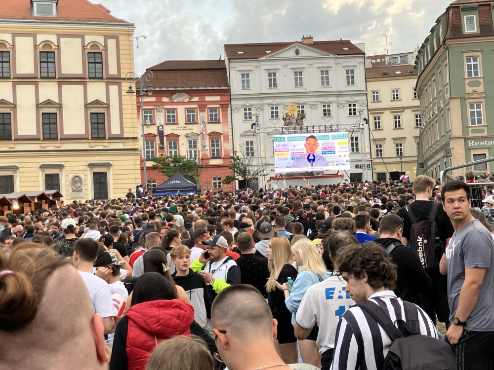 VIDEO: Tisíce lidí v centru Brna fandí českým hokejistům ve finále mistrovství světa