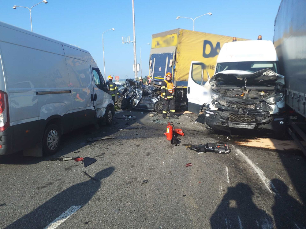 Na dálnici D1 u Brna se střetlo deset vozidel. Čtyři lidé jsou zranění