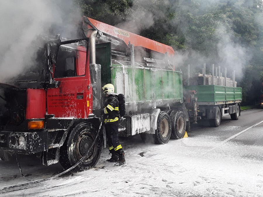 Na dálnici u Brna hořel náklaďák. Požár přerušil provoz