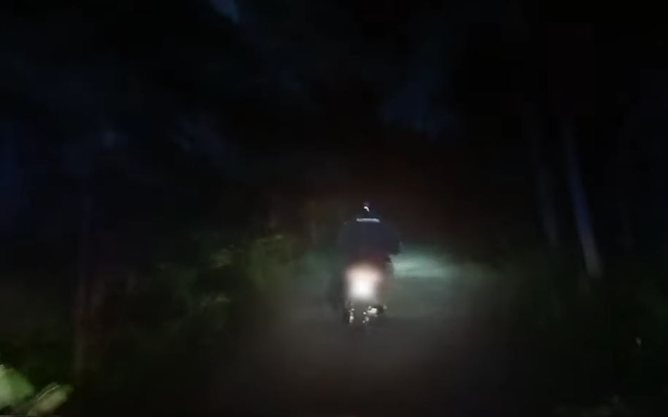 VIDEO: Opilý muž na skútru ujížděl policistům do lesa. Dostal smyk a vyválel se v bahně