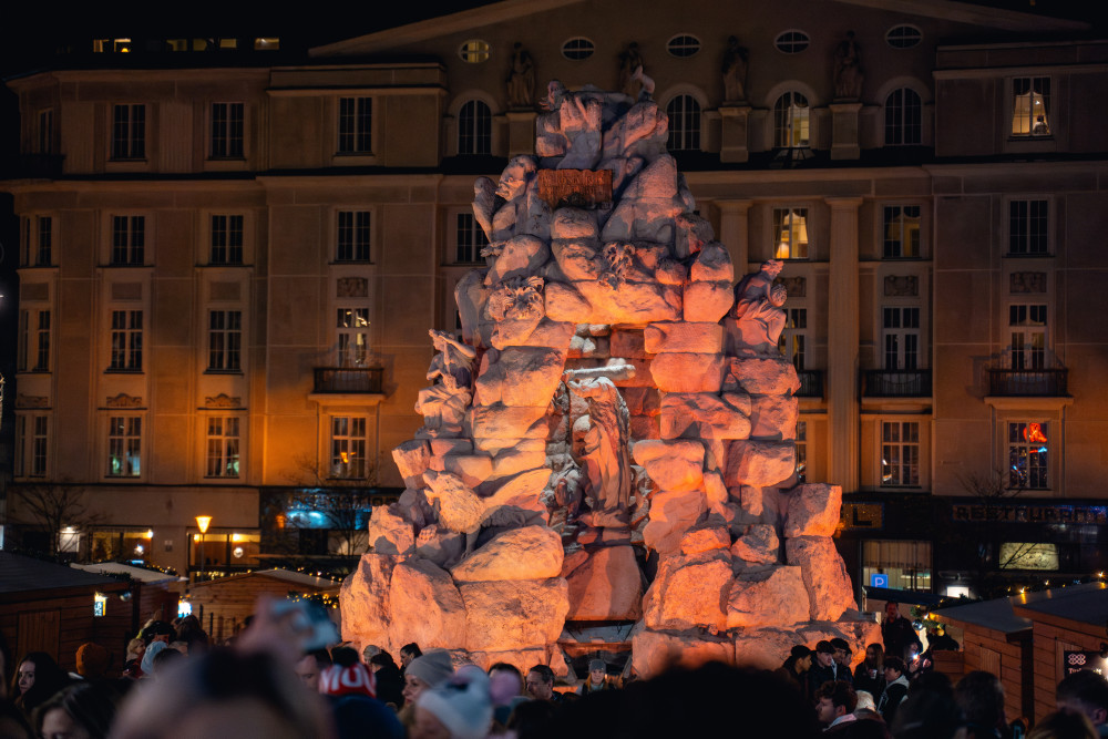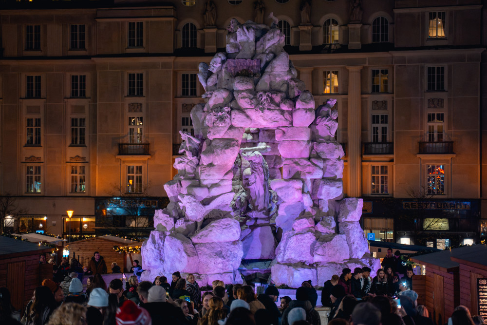 Adventní trhy na Zelňáku zpestří nová světelná atrakce. Září tam svátečně nasvícená kašna Parnas