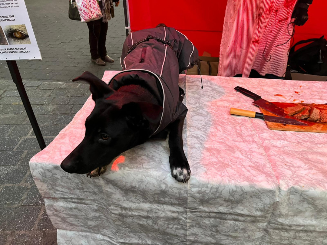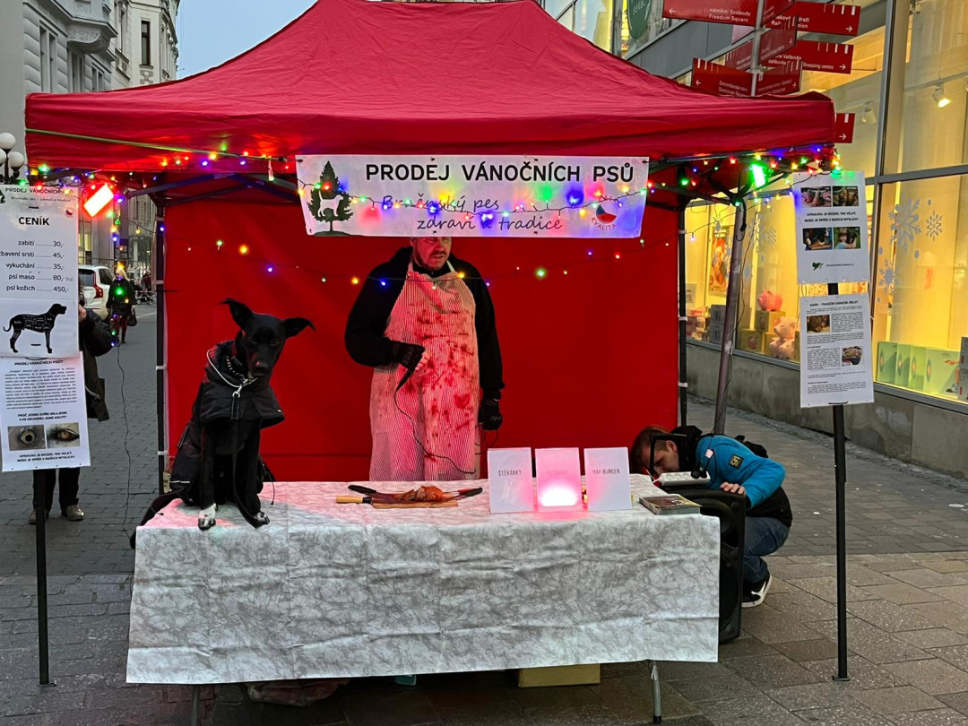 VIDEO: Kapři také cítí bolest, hlásají aktivisté v Brně. Od zabíjení ryb odrazují fiktivním prodejem vánočních psů