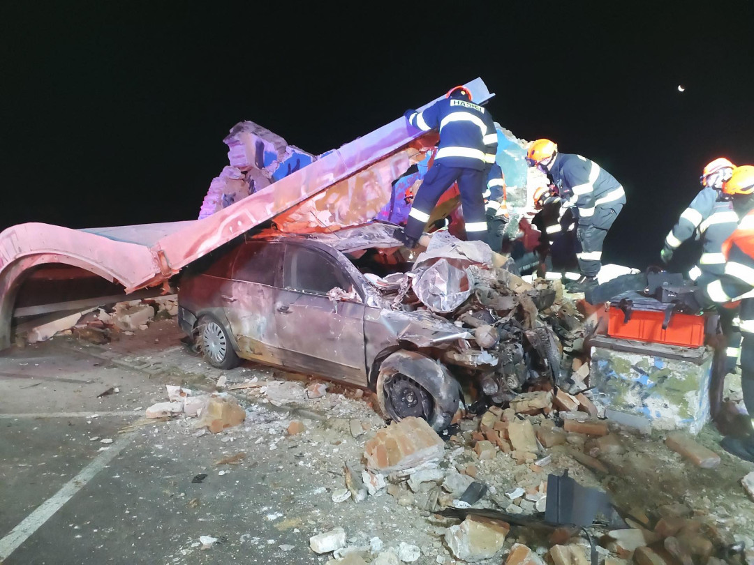 Na Znojemsku se srazila dvě auta a zbourala autobusovou zastávku. Jednoho zraněného hasiči vyprošťovali