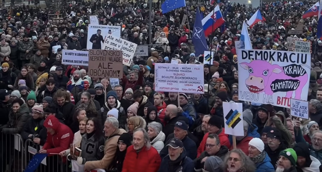 Nejen brněnské náměstí Svobody zaplnily davy Slováků. Účastníci protestů se vymezili vůči Ficově vládě