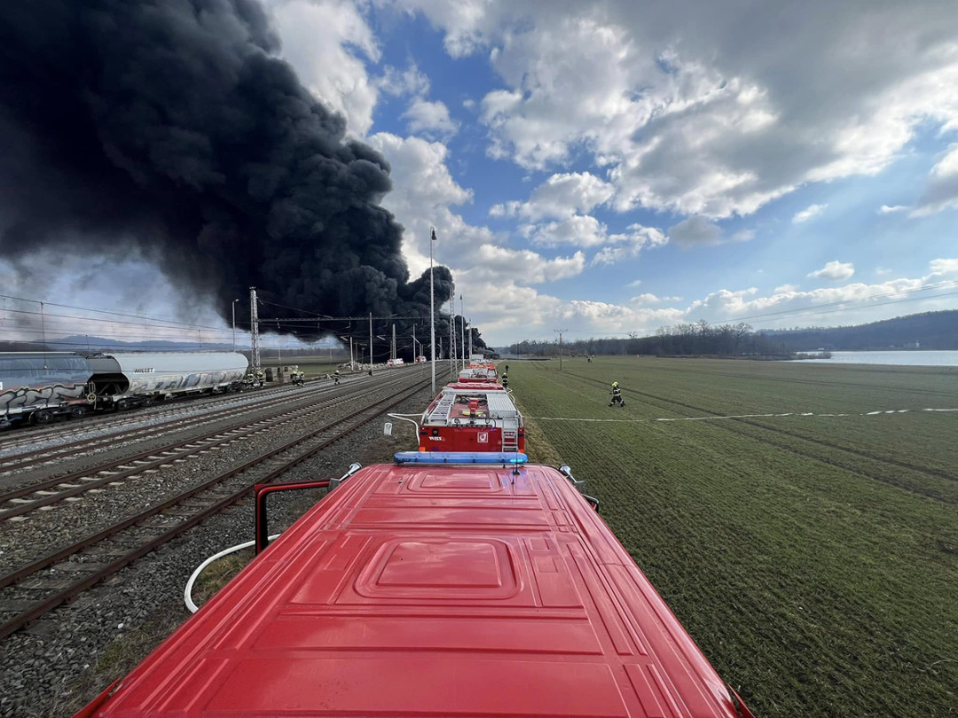 VIDEO: Brněnští hasiči míří na pomoc k obřímu požáru cisteren s benzolem