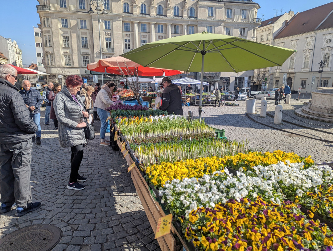 Brněnský Zelný trh s přicházejícím jarem ožívá. Lidé tam teď nakoupí bylinky nebo sazenice