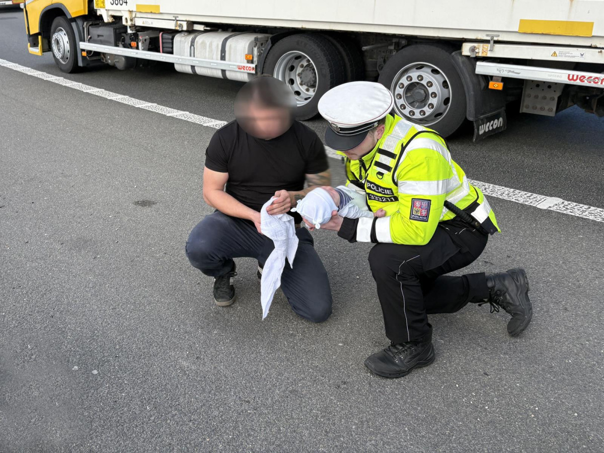 Řidič vyběhl z auta na dálnici u Brna s měsíčních chlapečkem, který nedýchal. Život mu zachránili policisté