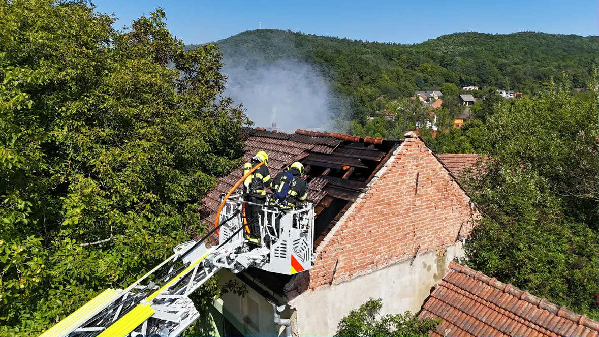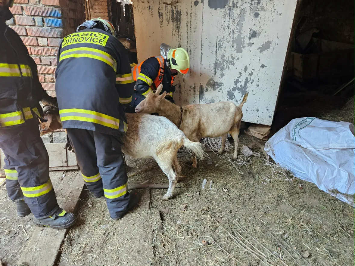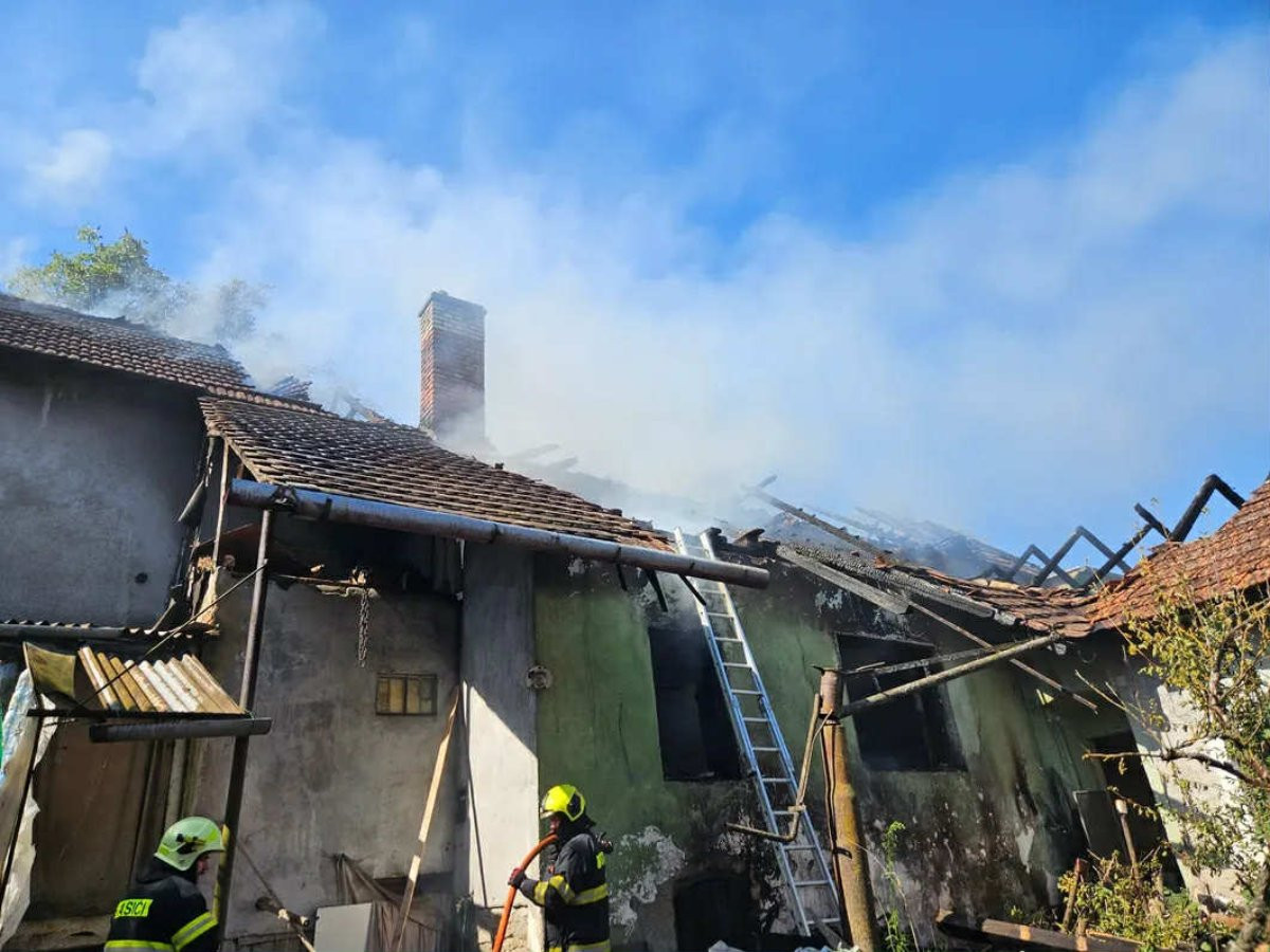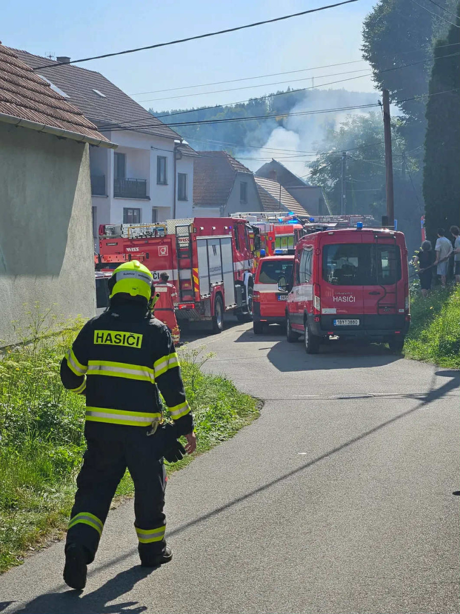 FOTO: Na Vyškovsku hořel rodinný dům. Dva lidé se zranili, na hasiče spadl trám