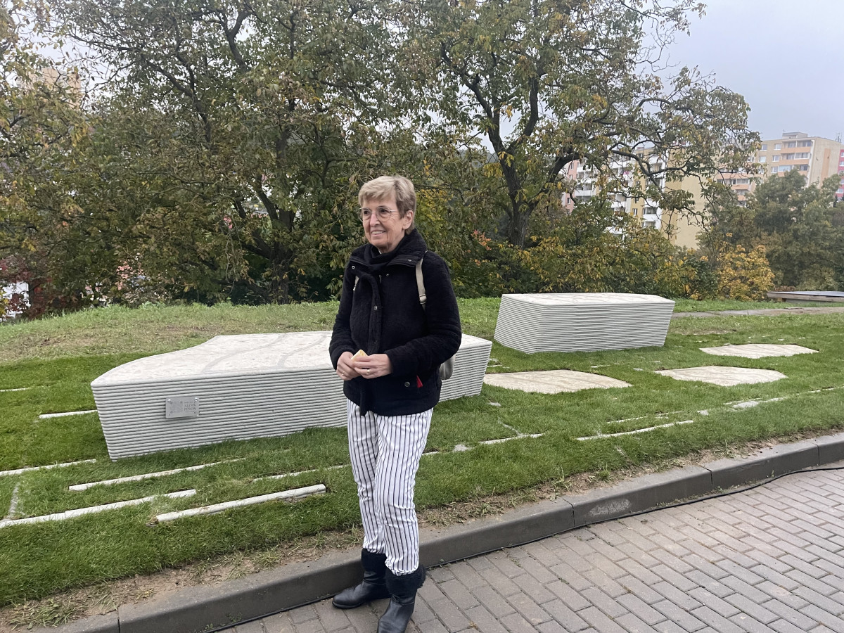 Ludmila Piňosová, manželka Aloise Piňose u nové lavičky
