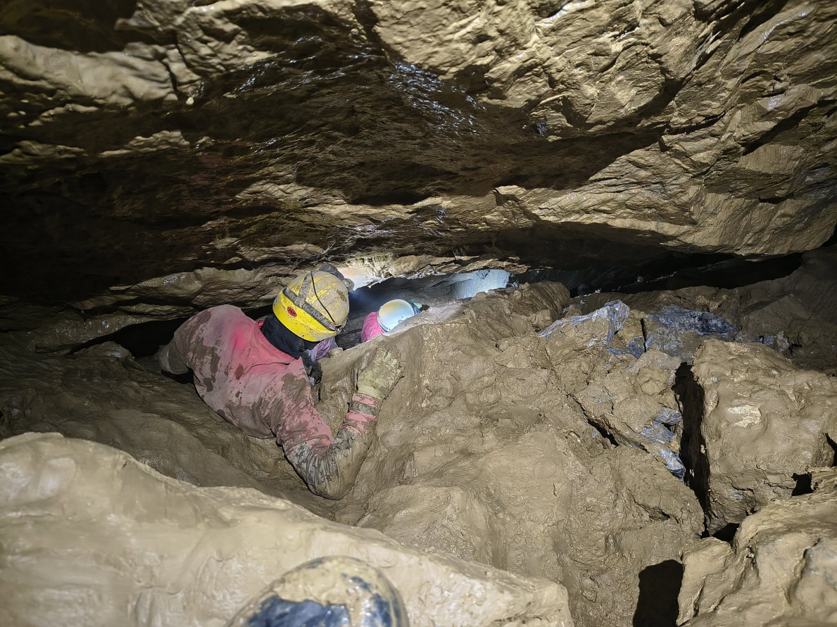 FOTO: Jeskyňáři našli v Moravském krasu novou chodbu, plazili se nánosy bahna