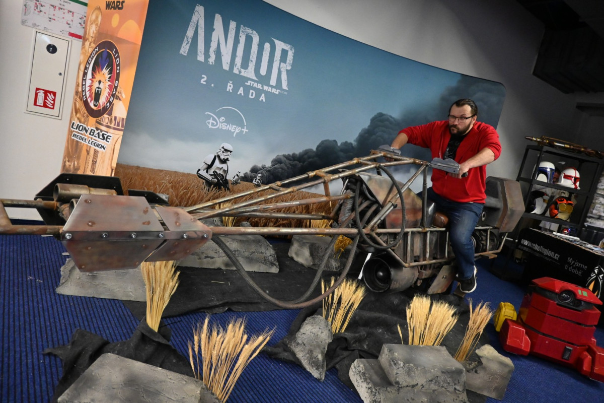 Na akce vozí i jím vyrobený speeder. Tento vznikl pro premiéru druhé řady seriálu Andor.