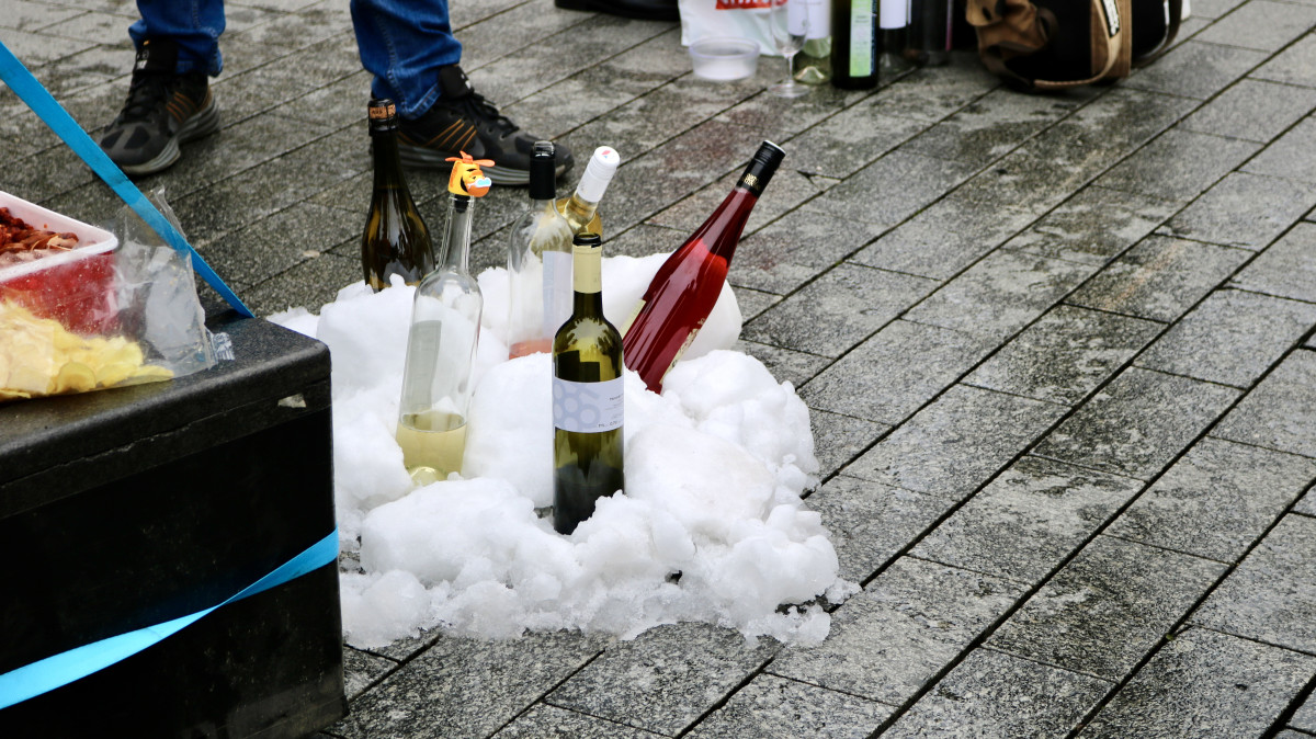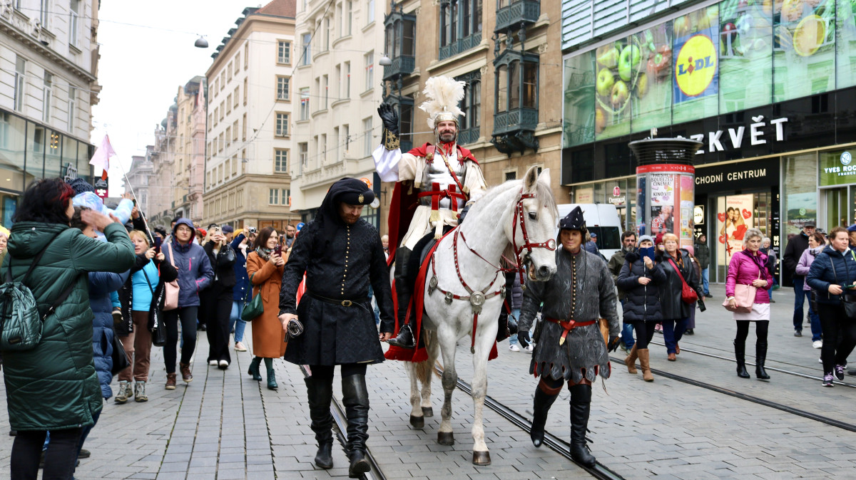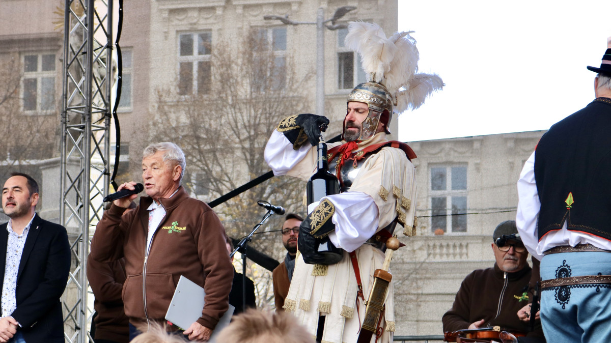 Lidé na náměstí Svobody koštují Svatomartinské víno, sešly se jich stovky