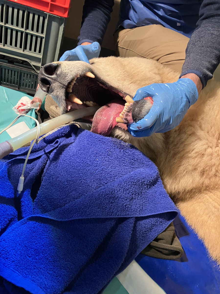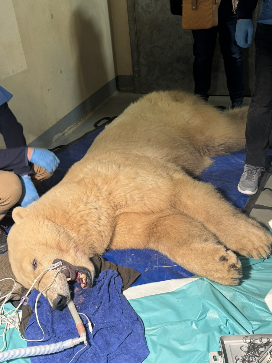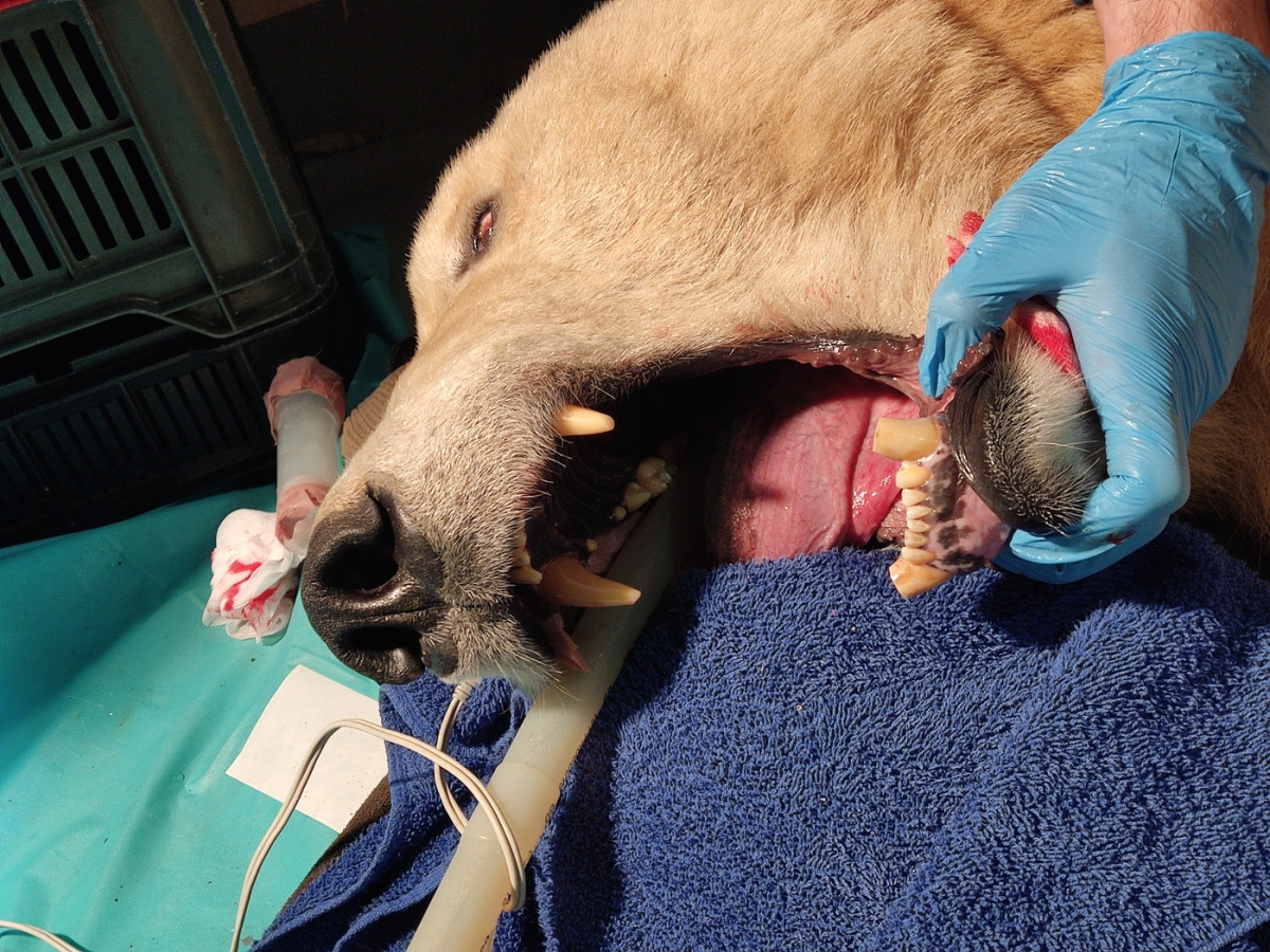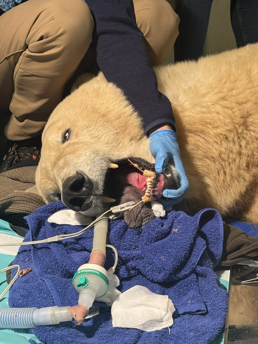 Lední medvědice Elsa musela na operaci. Veterináři jí v Brně zachránili špičáky