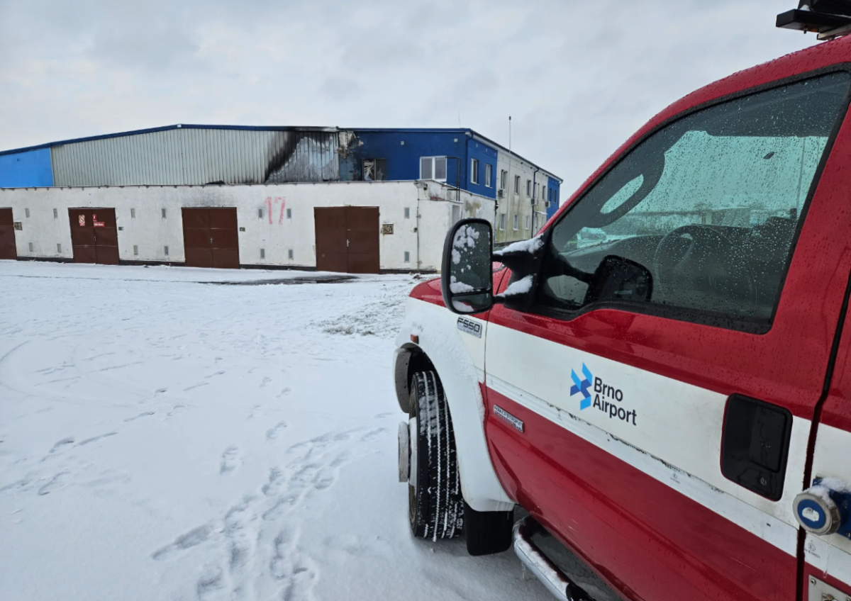 Hasiči likvidovali požár na brněnském letišti, hořelo v opravárenském hangáru