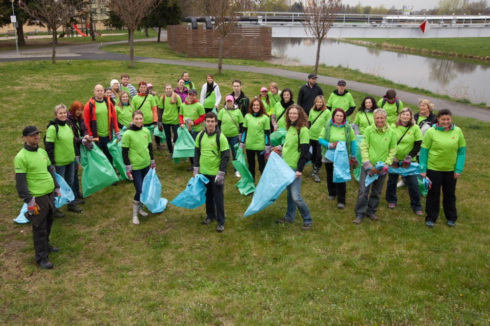 Zaměstnanci E.ONu se sešli, aby pomohli s úklidem v Budějcích